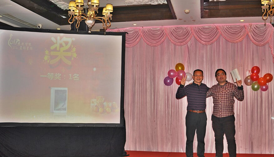 作为年会的主要环节,颁奖典礼特别隆重喜庆、激动人心。蓝玛星际和kaiyun开云电竞智能北京分公司的很多员工,在过去一年里,勤勤恳恳,兢兢业业,在工作中取得了优异的成绩。为了表彰他们的敬业精神和突出表现,年会上对他们进行了大力嘉奖。先进集体(研发部)、最佳经理人(张继)、优秀员工(张春晓、董学慧、李晓林、马栋、李海云、刘盼、杜飞)、优秀实习生(肖坚星),在全场人员的热烈掌声和称赞中接受了表彰和奖励。